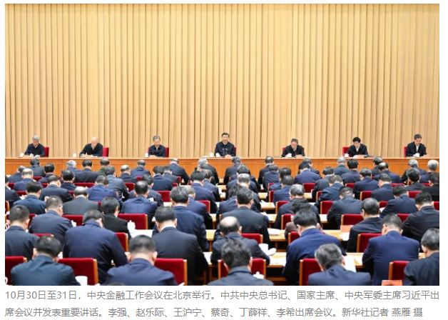 赵乐际王沪宁蔡奇丁薛祥李希出席中央金融工作会议10月30日至31日在北京举行。中共中央总书记、国家主席、中央军委主席习近平出席会议并发表重要讲话。中共中央政治局常委李强、赵乐际、王沪宁、蔡奇、丁薛祥、李希出席会议。习近平在重要讲话中总结党的十八大以来金融工作,分析金融高质量发展面临的形势,部署当前和今后一个时期的金融工作。李强对做好金融工作作了具体部署。