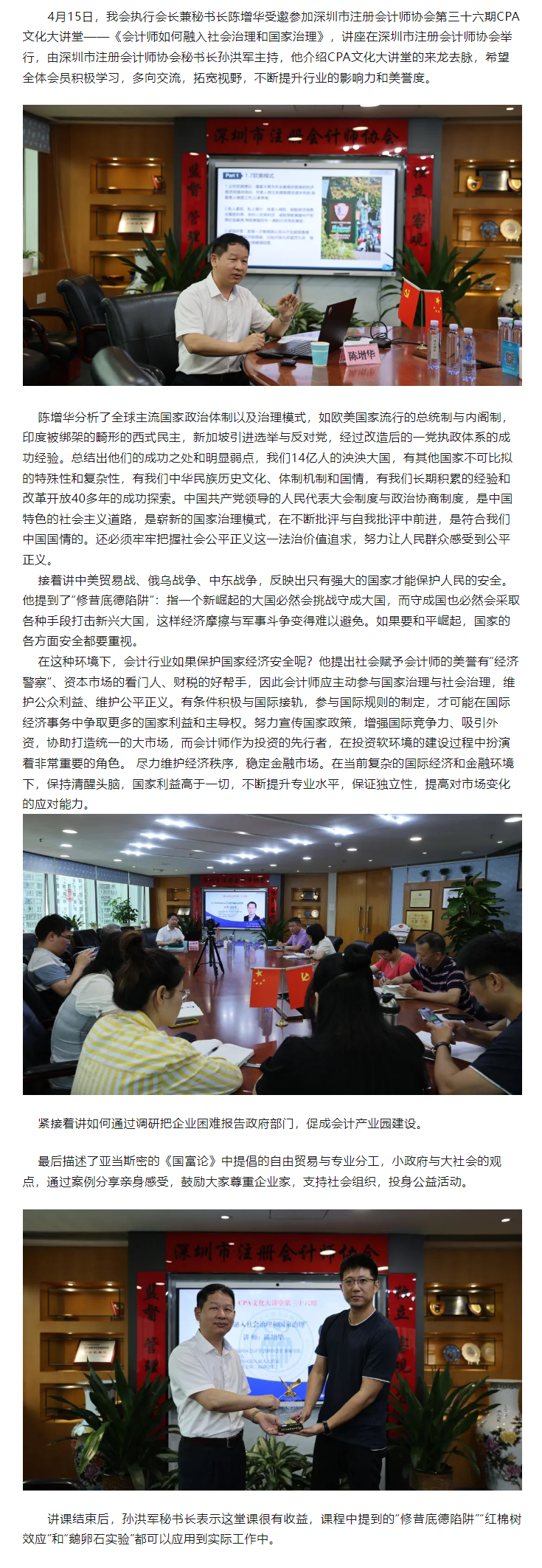 我会执行会长陈增华受邀参加深注协第三十六期文化大讲堂