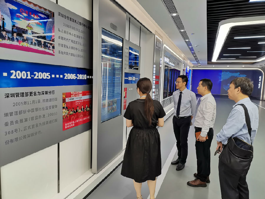 4月20日,学会常务副会长兼秘书长陈增华、常务副会长陈叔军、会员部部长康江伟一行前往常务理事单位——招商银行深圳分行进行调研。招商银行深圳分行运营管理部总经理助理张怿、计划财务部室主管陈晓华、运营管理部会计业务室张丽珍、分行营业部运营经理王芳及相关人员陪同接待。首先参观招商银行深圳分行展示中心,了解到招商银行于1987年在中国改革开放的最前沿——深圳经济特区成立,是中国境内第一家完全由企业法人持股的股份制商业银行,也是国家从体制外推动银行业改革的第一家试点银行。深圳分行成立以来,在总行的正确领导下,始终坚持市场导向、注重创新驱动,始终坚持“因您而变”的服务理念,经过27年的发展,已经成为深圳本地一家优势突出、特色明显的大行和强行。面向未来,招商银行深圳分行将紧密围绕客户和科技两大关键点,深化战略转型,努力为客户提供“源自金融、不止金融、超越金融”的全方位、智能化的服务。随后双方在会议室进行了交流,招商银行总经理助理张怿代表招商银行表示非常欢迎会计学会的到来,并将全力协助学会完成此次调研工作。计划财务部室主管陈晓华就招行的营收、纳税等经营情况数据进行了介绍,并表示未来财务工作将重点开发自动智能化报销系统,增加更多的科技元素。陈增华秘书长表示,招商银行是深圳的世界500强企业、纳税大户,为福田经济发展做出了重大贡献。同时,作为福田会计学会的创始会员,非常感谢一贯以来对学会各项活动的大力支持,招商银行在金融创新与个人服务方面有很多优势,未来希望继续加强论坛、培训、运动会等方面的合作,更好地整合双方资源。陈叔军常务副会长也详细询问了有关金融业财务方面普遍存在的问题,并对招商银行的风险防范措施表示赞赏。此外,双方还就金融机构的现状、人才梯队建设、未来发展趋势等方面作了深入交流。