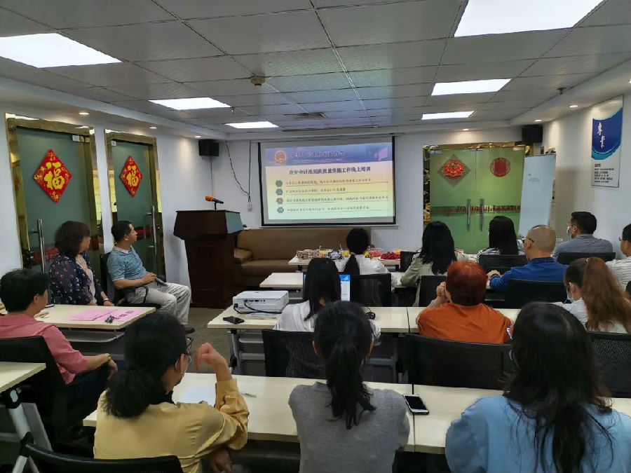 第二场培训于4月13日下午2点在佳和华强大厦25楼举行,学会常务理事单位深圳皇嘉会计师事务所(普通合伙)协办。学会常务副会长兼秘书长陈增华、皇嘉会计师事务所合伙人崔小红、总经理刘晏如等共同出席的培训开课仪式,参加培训的人员来自于皇嘉和附近各事务所代表,同时,除在会议室参加培训的人员外同一时间还有皇嘉其他人员同步通过网络观看培训,共计100多人。