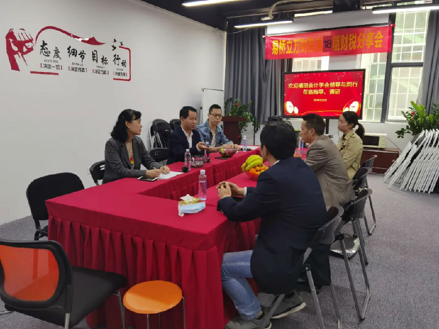 3月22日,为继续全面进行行业调研工作,福田区会计学会常务副会长兼秘书长陈增华带领秘书处工作人员对深圳皇嘉会计师事务所(普通合伙)、深圳易桥立万财税顾问有限公司进行实地走访调研。