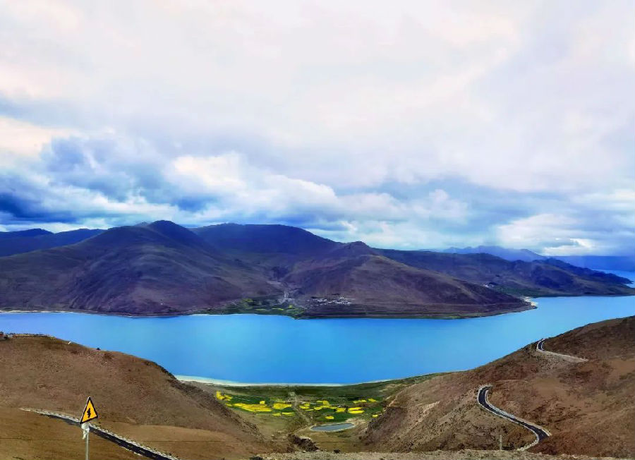 距离拉萨西南方向约70公里的羊卓雍措,是西藏三大圣湖之一,被誉为是世界上最美丽的湖。当我们驱车穿越蜿蜒曲折的悬崖峭壁,偶尔看到谷底废弃的几台事故车残躯,还是有点胆寒。抵达山南市海拔4998米羊湖边,看到那碧玉般的湖水,寂静的湖面,在阳光的照射下闪闪发光,在夏季苍茫的高原映衬下,显得更加纯净碧蓝,一尘不染,有一种惊艳的震撼,犹如梦中仙境,当地流传着这样一首民歌:“天上的仙境,人间的羊卓;天上的繁星,湖畔的羊群。”羊卓雍措的水是纯蓝的,柔情的,高原的风轻拂水面,荡起一个个淡淡的涟漪,让人们感觉灵魂不断升华,这不就是我们寻觅的诗和远方么?